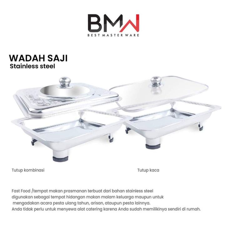 Prasmanan Set Stainless / Set Prasmanan Lengkap Wadah Saji Makanan Warmer Bulat Kotak Tutup Kaca