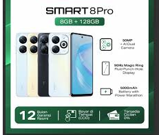 Infinix Smart 8 Pro 8/128 GB Handphone Second Bekas Fullset - Shiny Gold, 8+8/128 Fullset