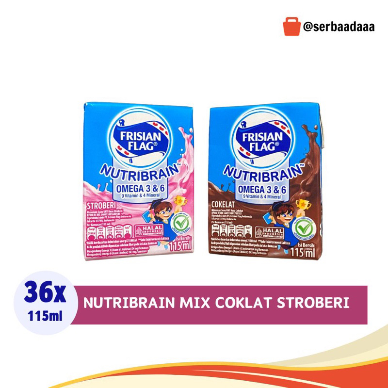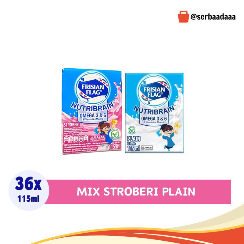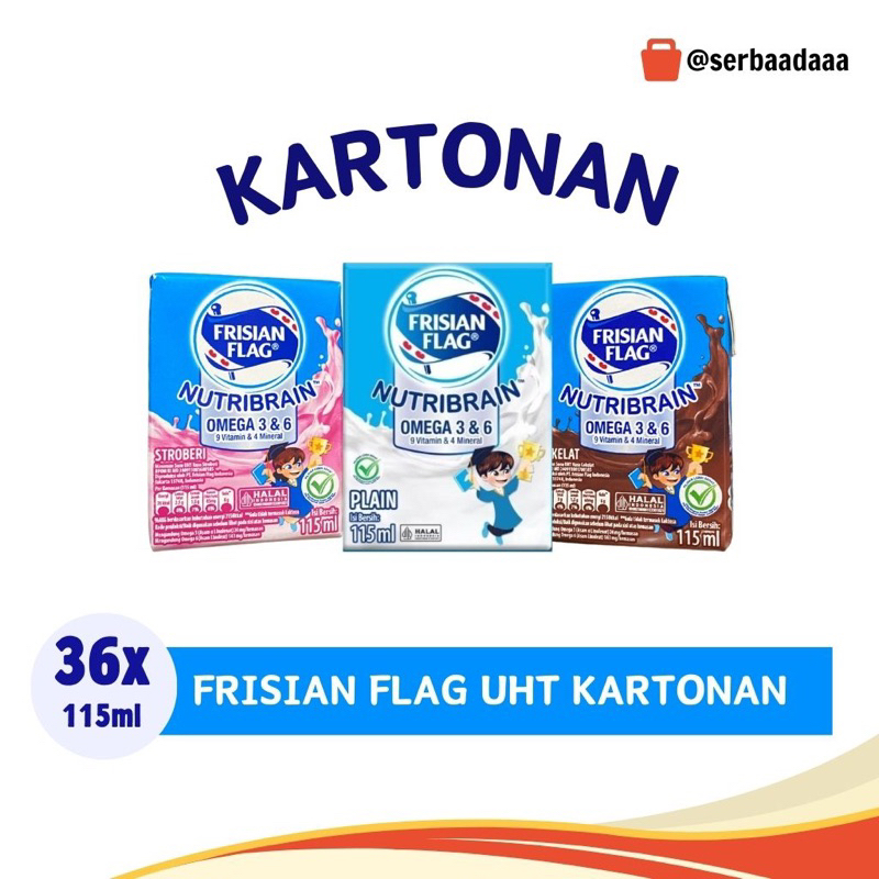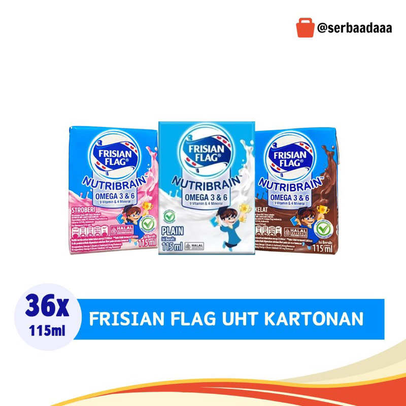 FRISIAN FLAG OMEGA NUTRIBRAIN UHT RASA COKELAT | STRAWBERRY | PLAIN 36PCS×115ML KARTONAN