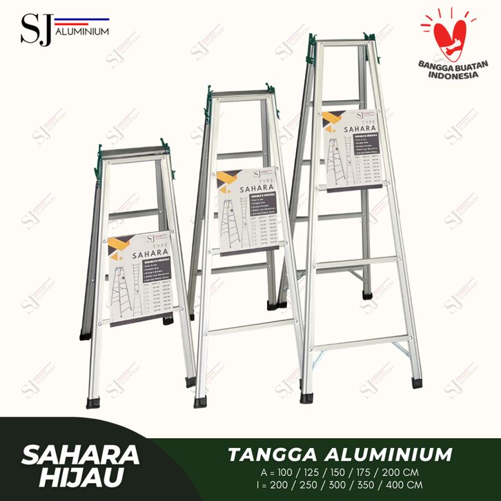 Tangga Lipat Aluminium Sahara Hijau Jumbo Ladder Multifungsi 200KG - Ukuran 1 M / 1,25 M / 1,5 M / 1,75 M / 2 M