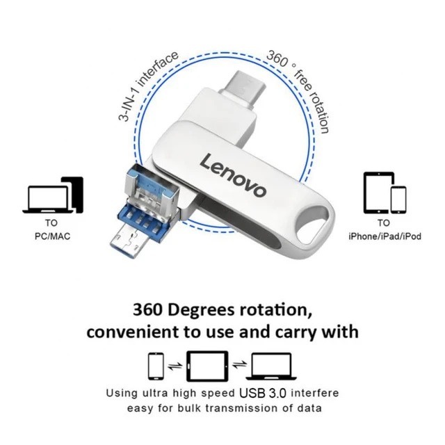 2TB/LENOVO FLASHDISK 3 IN 1 TYPE C 1TB 3.0 USB HIGH SPEED 2TB 1TB 512GB 256GB ANTI AIR UNTUK KOMPUTER