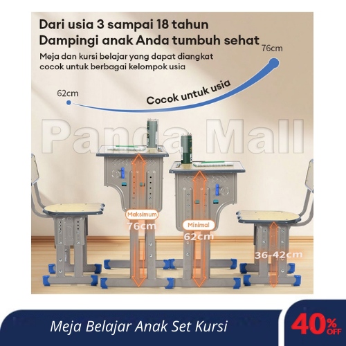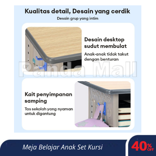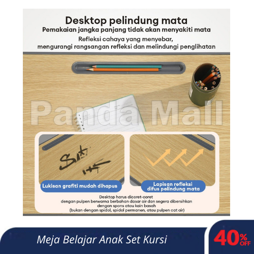 Meja Belajar Anak Bermotif Set Meja Kursi SD SMP Anti Noda Mudah Dibersihkan Tahan Air Ruang Belajar Rumah