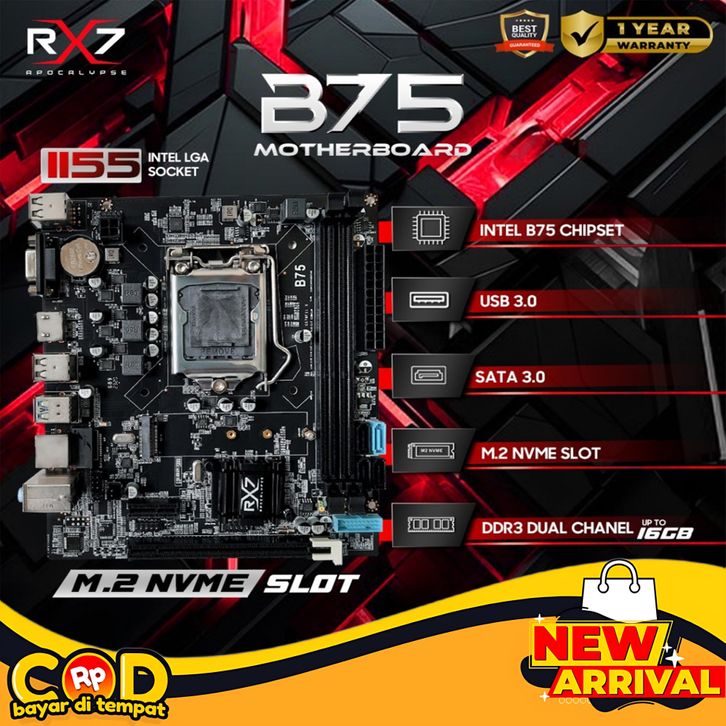 Motherboard RX7 B75 / H61 PLUS LGA 1155 DDR3 B75 Mainboard SUPPORT NVME
