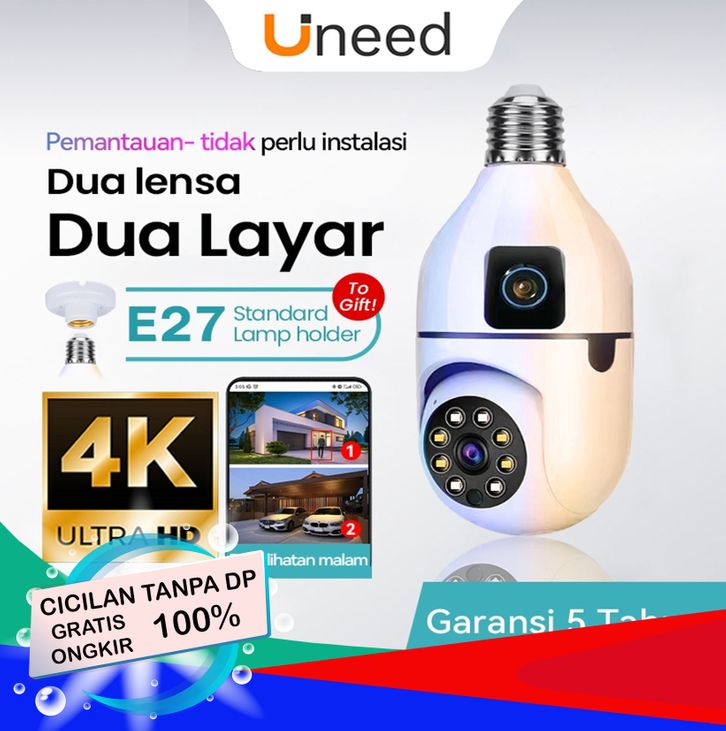 BARU Uneed -CCTV Lampu Kamera Full HD 1080P Kamera Smart CCTV 360 IP Camera Night Vision Flash Light cctv