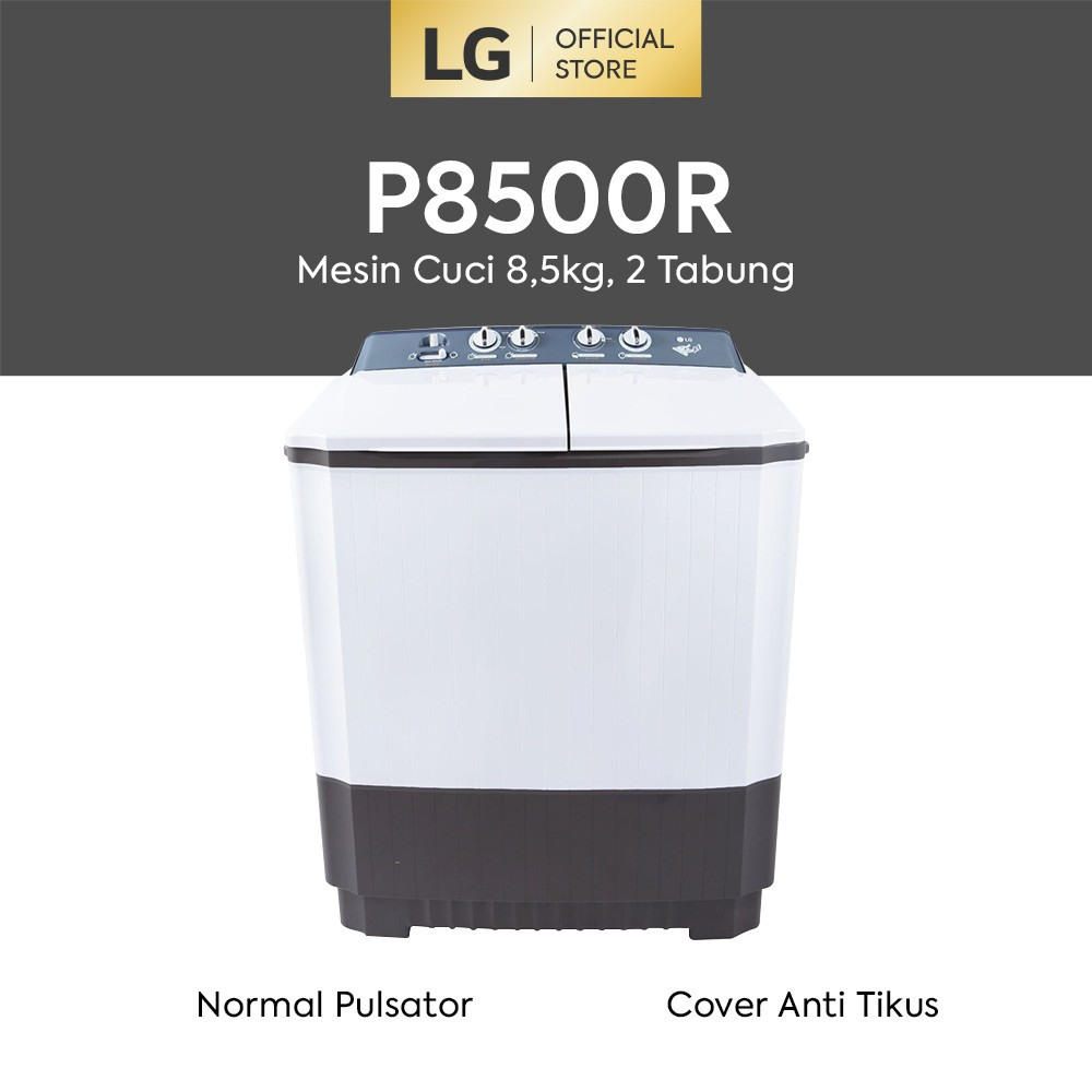 MESIN CUCI LG 2 TABUNG TWIN TUB 8,5KG TOP LOAD ROLLER JET PULSATOR 3 PROGRAM PENCUCIAN WIND JET DRY P8500R