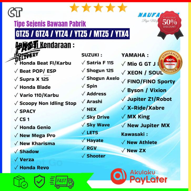 Aki Motor BEAT MIO M3 J GT Z S XEON SOUL GSJ GTZ5 Aki Kering Langsung Pasang