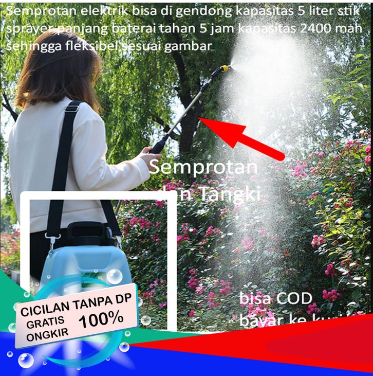 Semprotan elektrik bisa di gendong kapasitas 5 liter stik sprayer panjang baterai tahan 5 jam kapasitas 2400 mah sehingg
