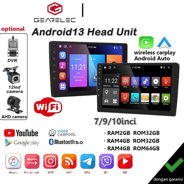 Head Unit Android FREE CAMERA LED 10 Inch 4+32GB Universal 12 Radio Stereo Mobil 4+32GB ROM Bluetooth WiFi GPS Navigasi