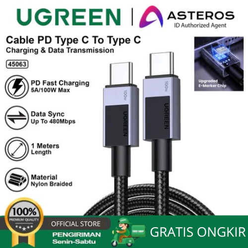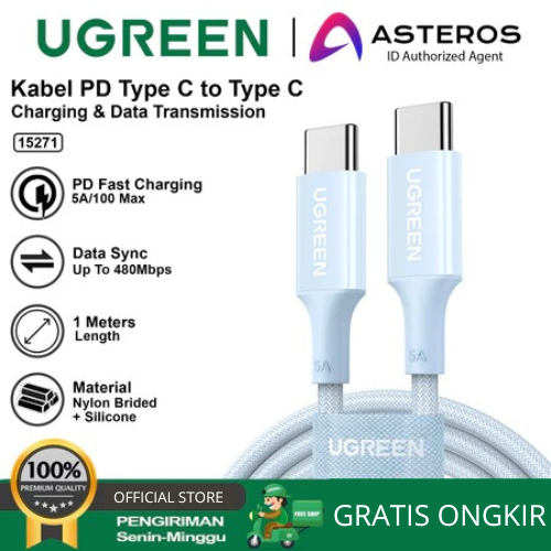 UGREEN Kabel Data PD Type C To Type C Fast Charging 3A 5A Max 100W Original Official store