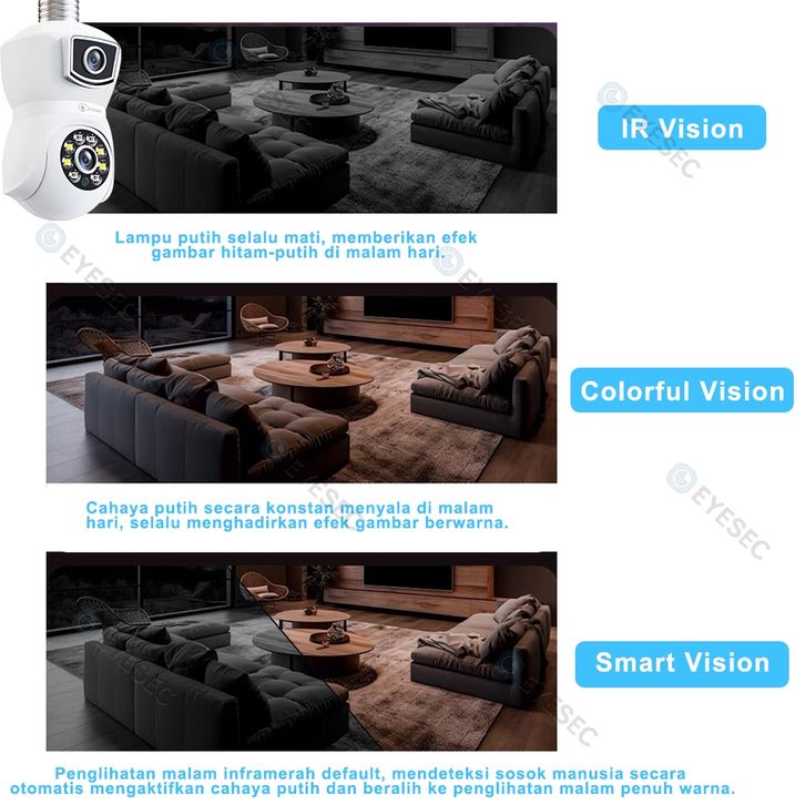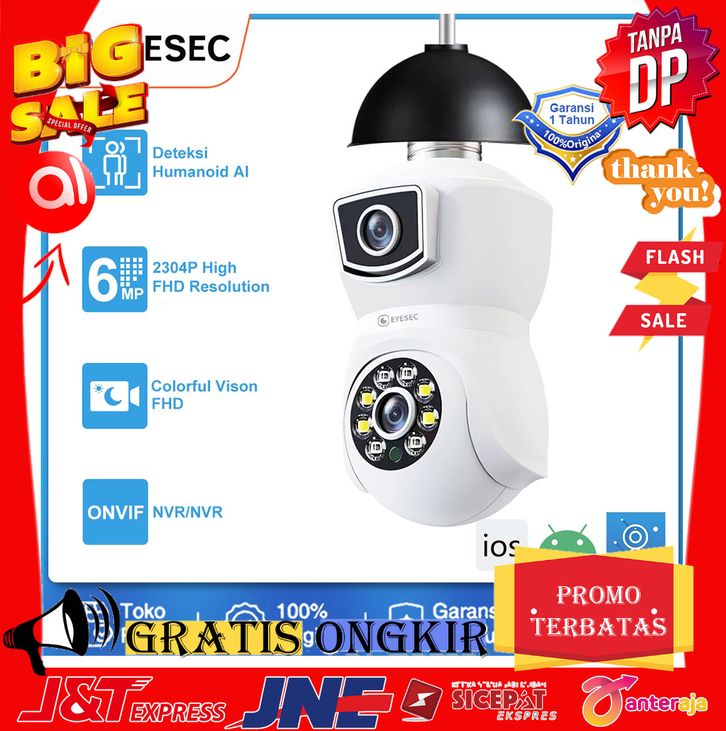 TANPA DP EYESEC LAMPU CCTV 6MP 2 KAMERA WIFI CCTV BOLAM DUAL LENS IP CAMERA 360 DERAJAT OUTDOOR KAMERA HP JARAK JAUH