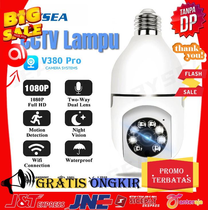 TANPA DP BYSEA V380 PRO KAMERA SMART WIFI CCTV BOHLAM 360° PTZ PANORAMIC LED LIGHTING REMOTE CONTROL IP CAMERA