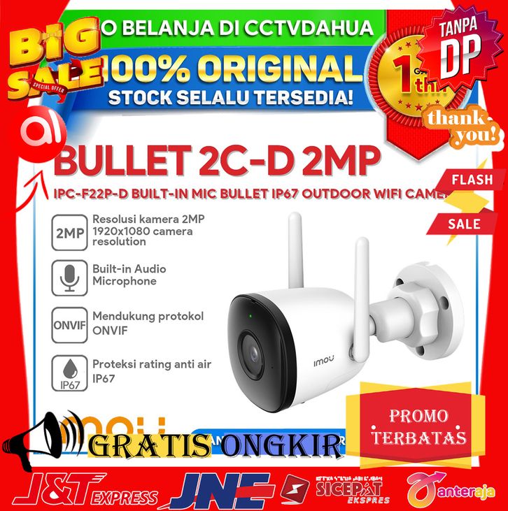 TANPA DP IMOU IPC-F22P-D BULLET 2C-D 2MP HUMAN DETECTION IP67 BERGARANSI RESMI