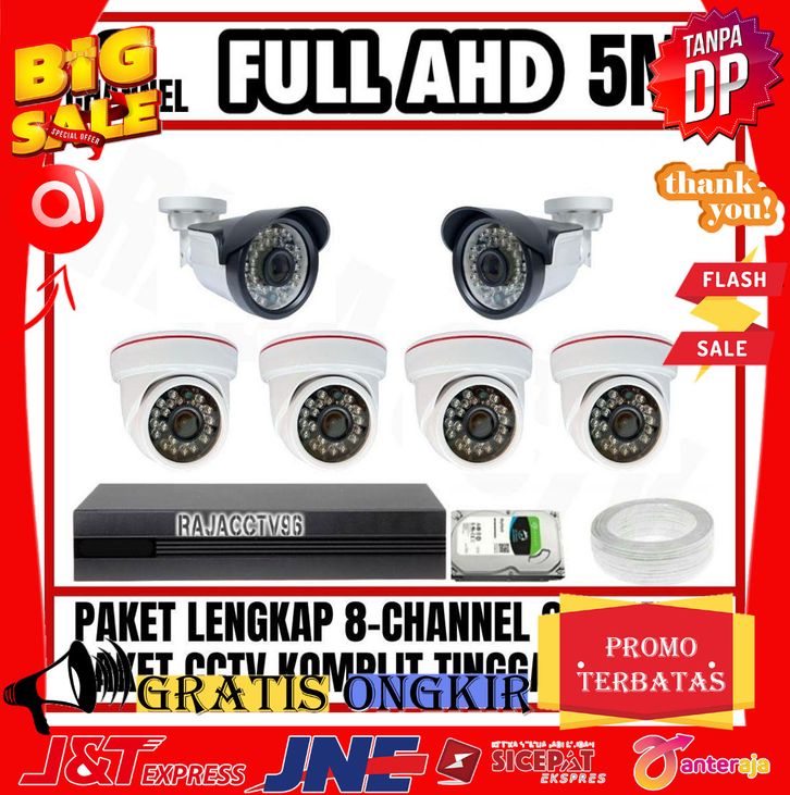TANPA DP PAKET CCTV 8 CHANNEL 6 CAMERA FULL AHD 5MP 1080P IR SONY KAMERA CCTV KOMPLIT TINGGAL PASANG AUDIO SERIES