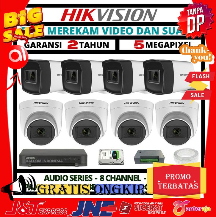 TANPA DP PAKET CCTV HIKVISION 5MP 8 CHANNEL 8 CAMERA TURBO HD KAMERA CCTV