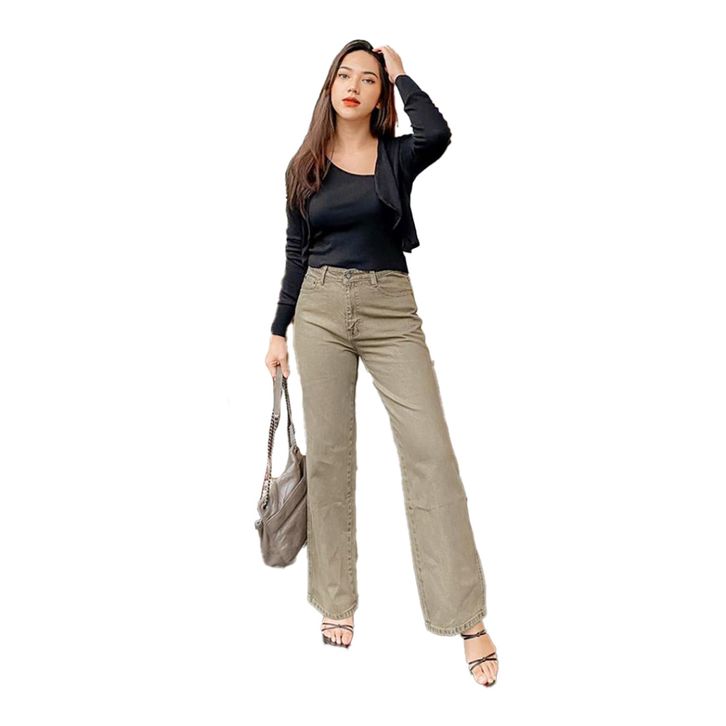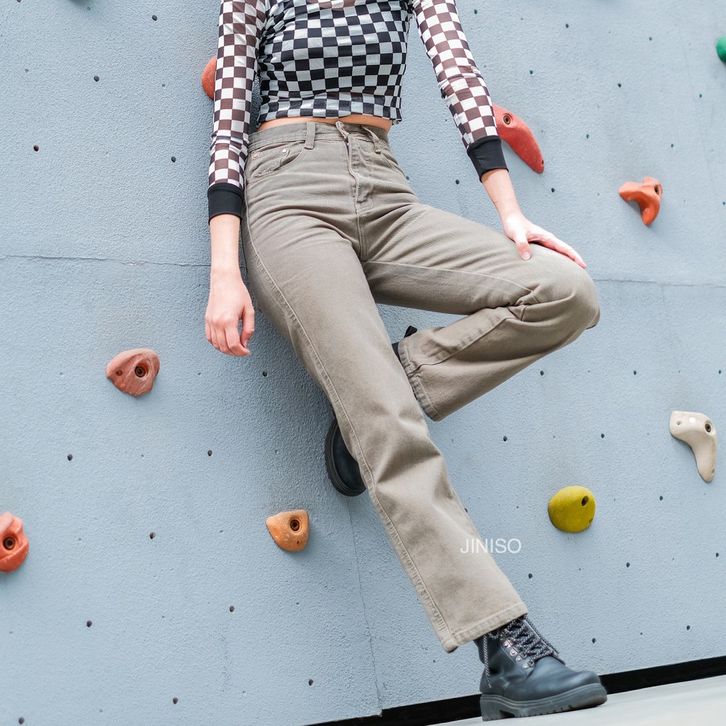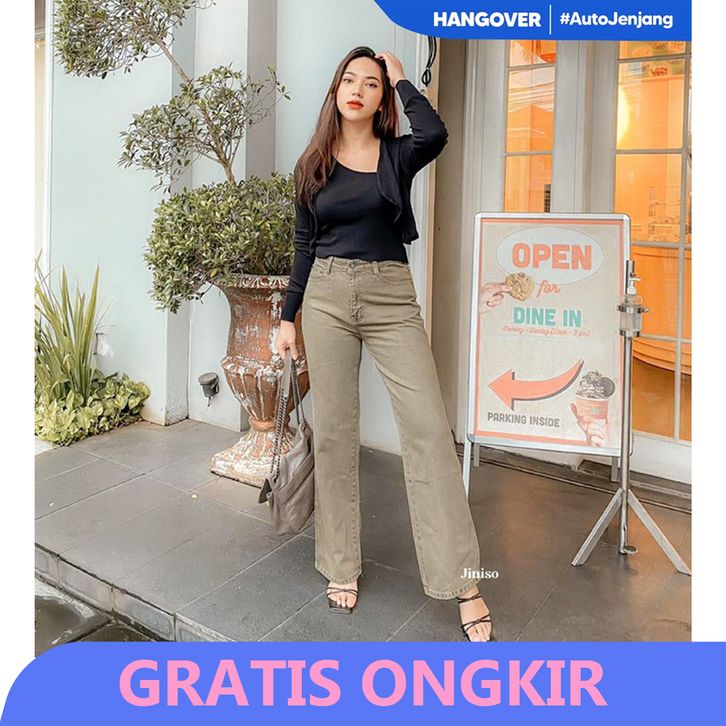 CELANA JINISO 814 HANGOVER Celana Jeans Wanita High Waist Celana Jeans Cewek Jumbo Longgar Kekinian HW