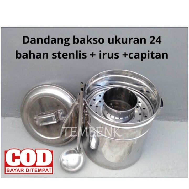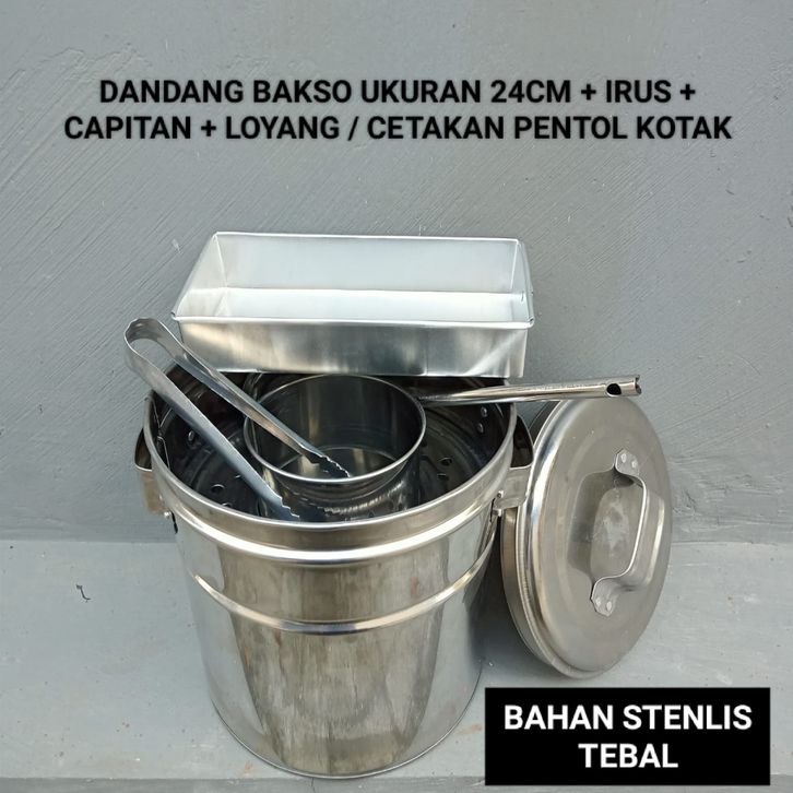 Dandang Bakso Dandang Bakso Mini Dandang Bakso Ukuran 24 Bahan Stenlis Tebal + Irus + Capitan + Loyang / Cetakan Pentol