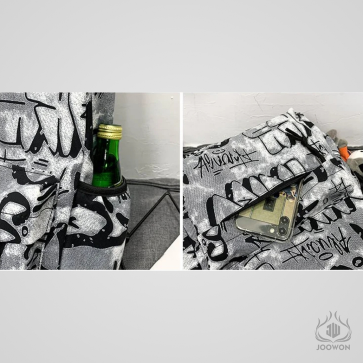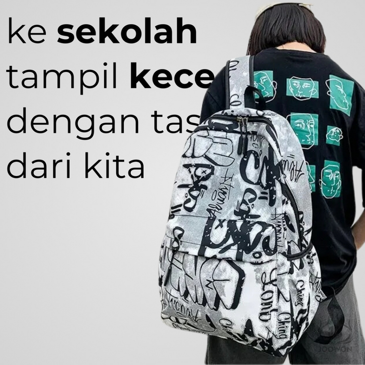tas ransel pria Tas Ransel Motif Abstrak Casual Bahan Nylon Trendy / Tas Sekolah Unisex Terbaru Fashionable - WY10