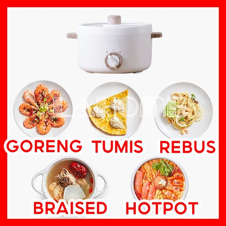 LAHOME Panci Listrik Panci Elektrik Lapisan Keramik Anti-lengket Electric Pot Portable Wajan Frying Pan Electric Cookin
