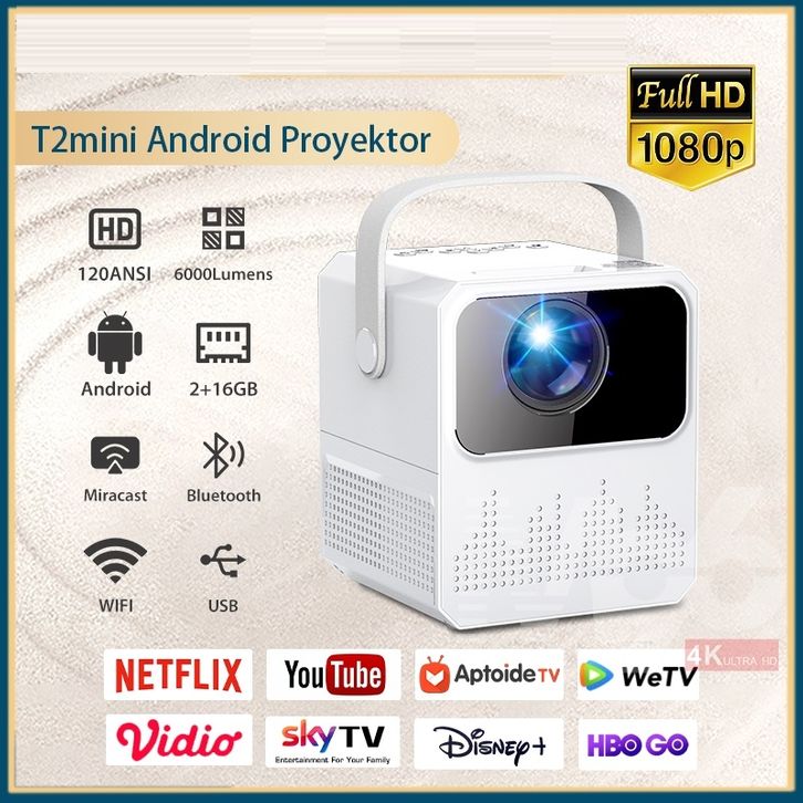 M96 T2mini Proyektor Android TV 1080P Smart Projector 6000 Lumen Android 9.0 Ram 2G Rom 16G proyektor mini portable hp H