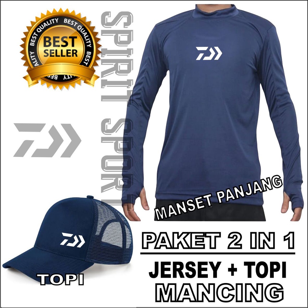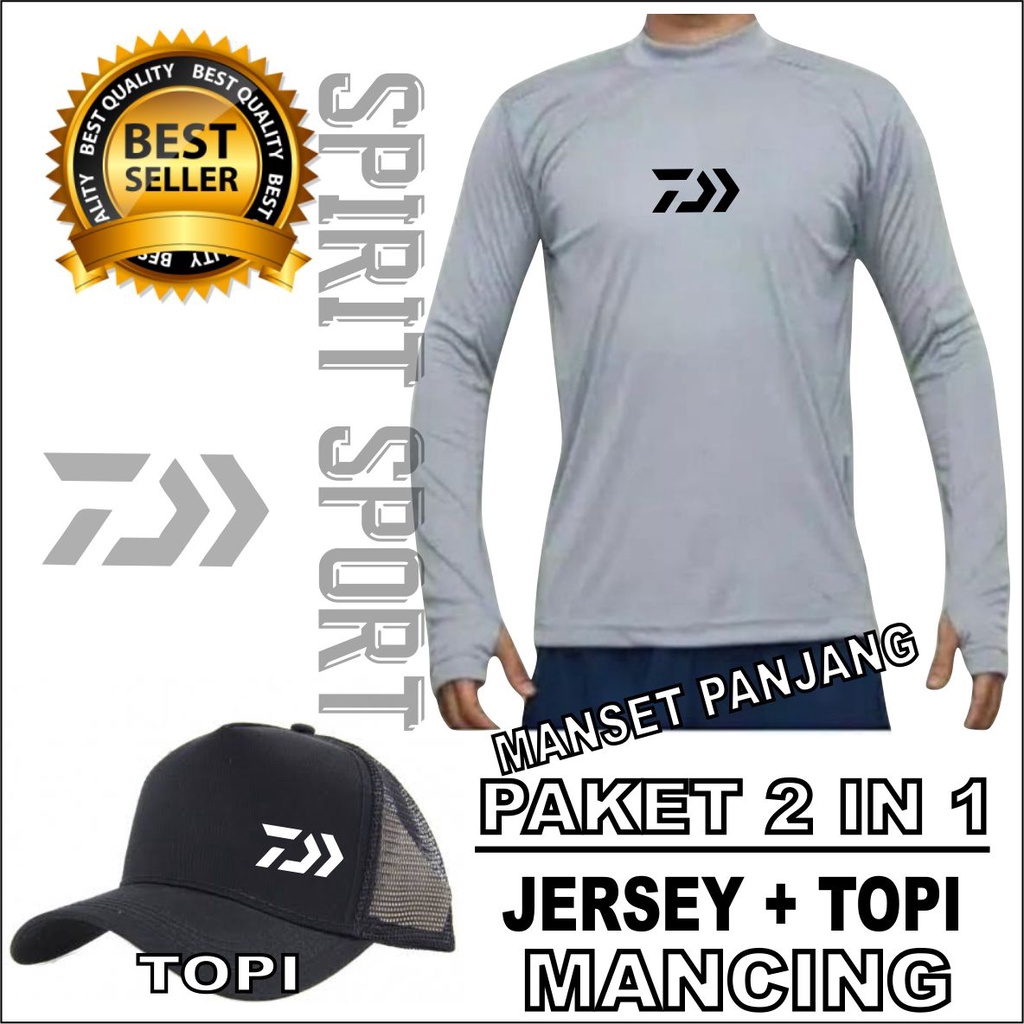 PROMO BARU PAKET HEMAT JERSEY TOPI MANCING PRIA 2 IN 1 D A I W A JERSEY LENGAN PANJANG GRATIS TOPI OLAHRAGA MANCING
