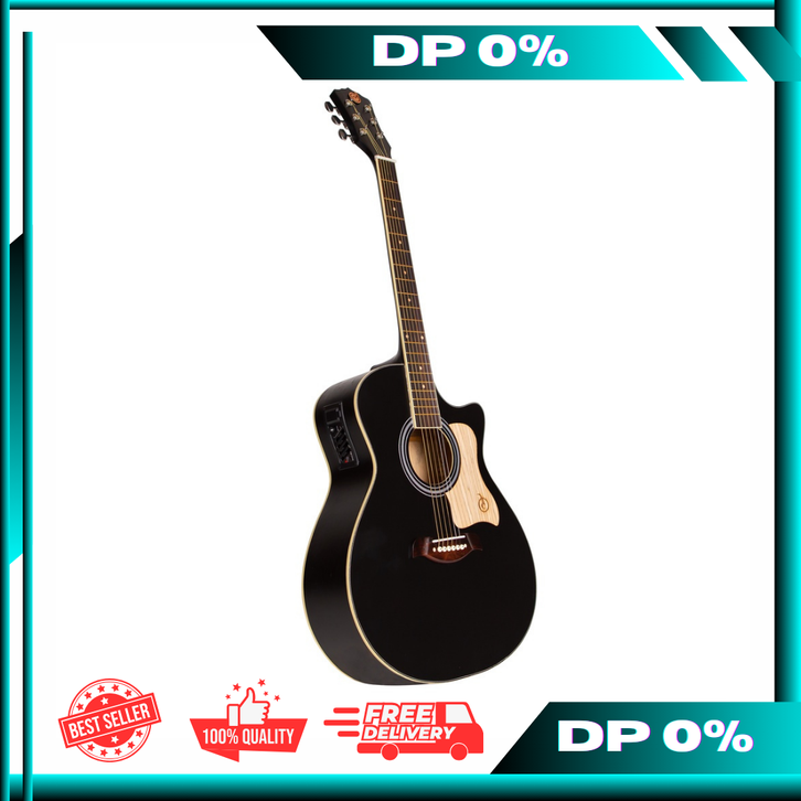 GITAR AKUSTIK MANDALIKA EQ7545R ELEKTRIK DTS 01TY BK BONUS SOFTCASE DAN SENAR CADANGAN HITAM ORIGINAL GRATIS ONGKIR