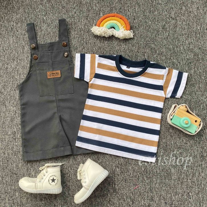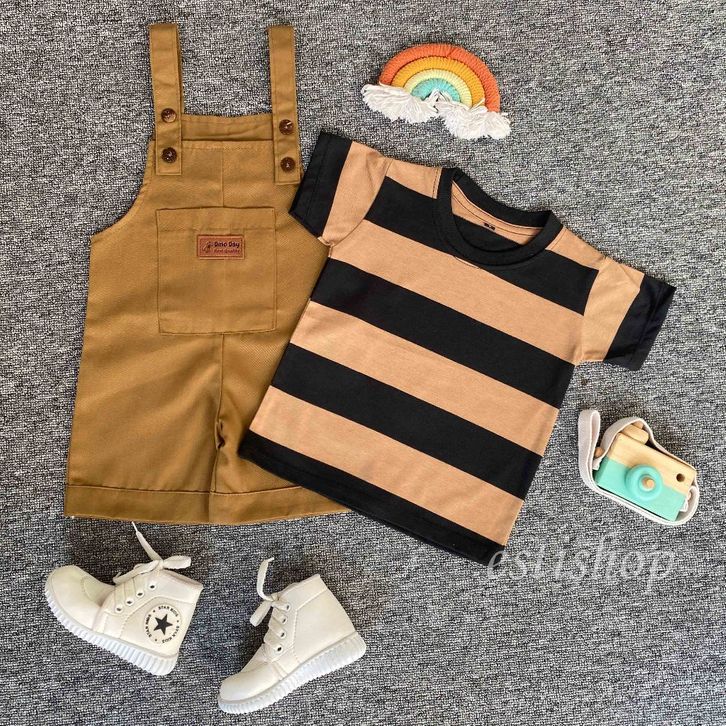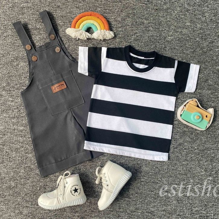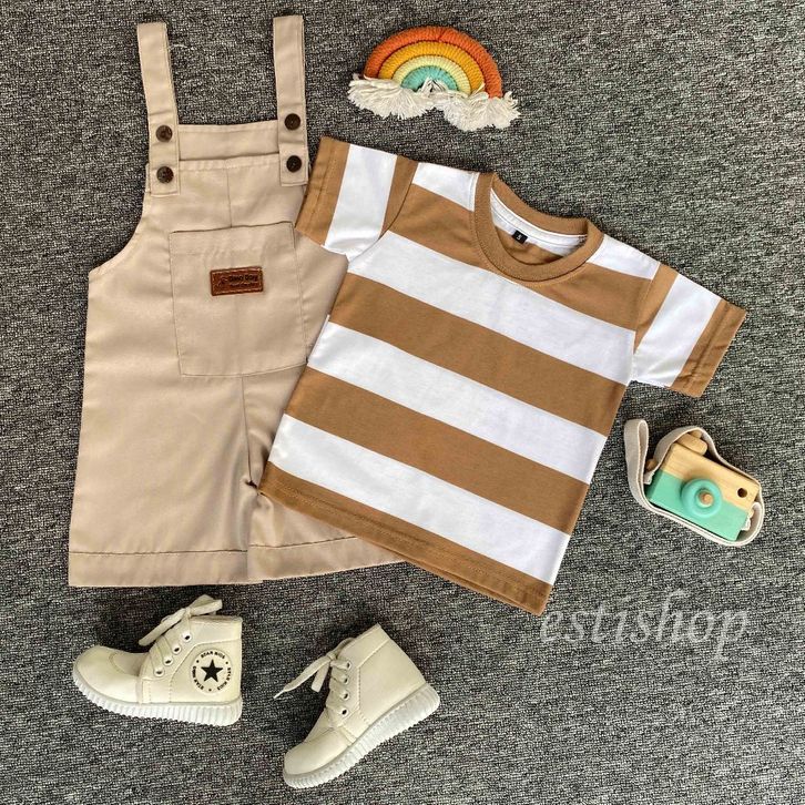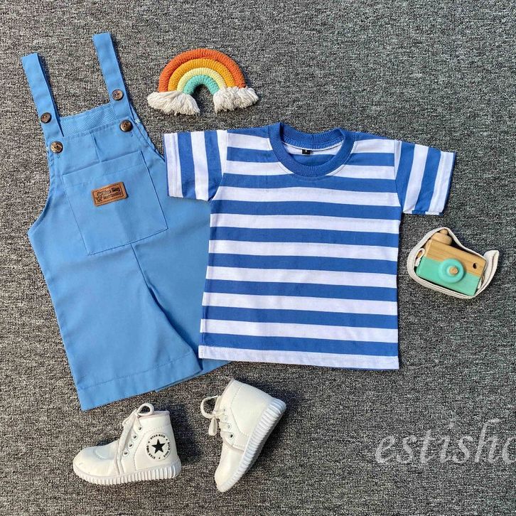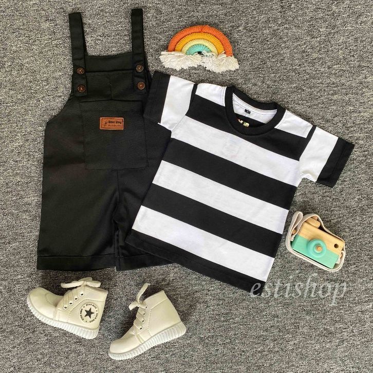 ESTISHOP Setelan Anak Bayi Jumpsuit Overall Stripe Salur untuk Cowok dan Cewek FREE ONGKIR