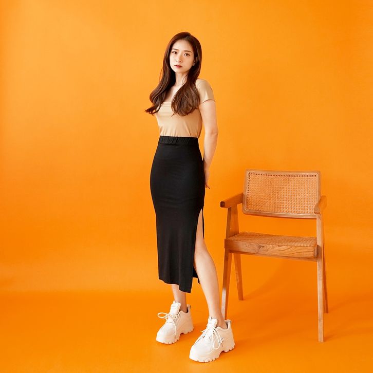 OROY SKIRT KOREAN LONG SKIRT SPAN WANITA ROK HITAM PANJANG OR1050 BELAH SAMPING UKURAN S- XL POLOS