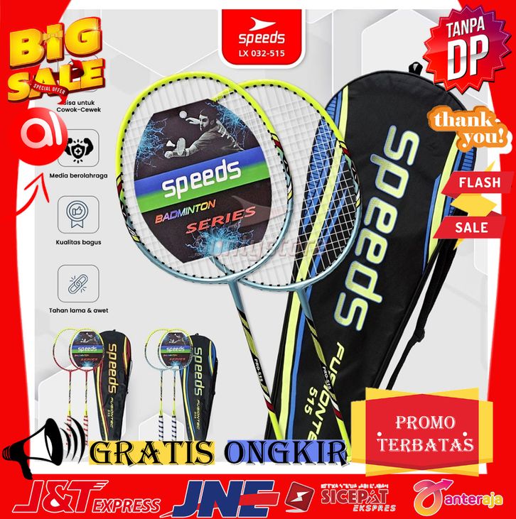 TANPA DP SPEEDS RAKET BADMINTON ISI 2PCS RAKET BULU TANGKIS ALAT OLAHRAGA RACKET BADMINTON ORIGINAL 032-515