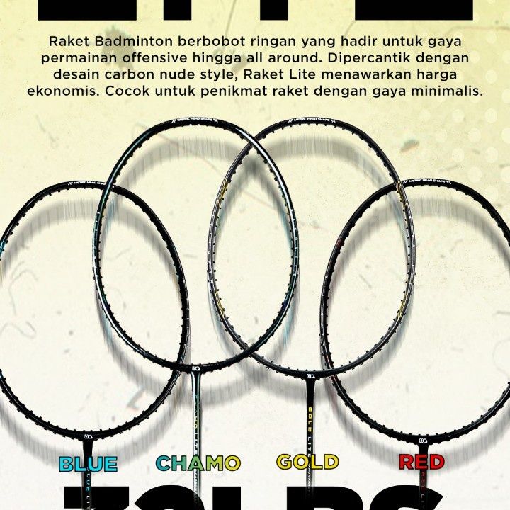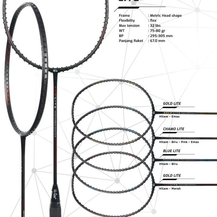 TANPA DP RAKET BADMINTON HIQUA HI-QUA LITE GOLD/CHAMO/BLUE/RED LITE RINGAN 5U