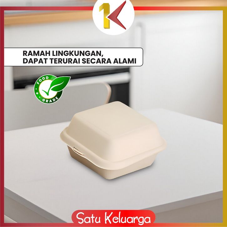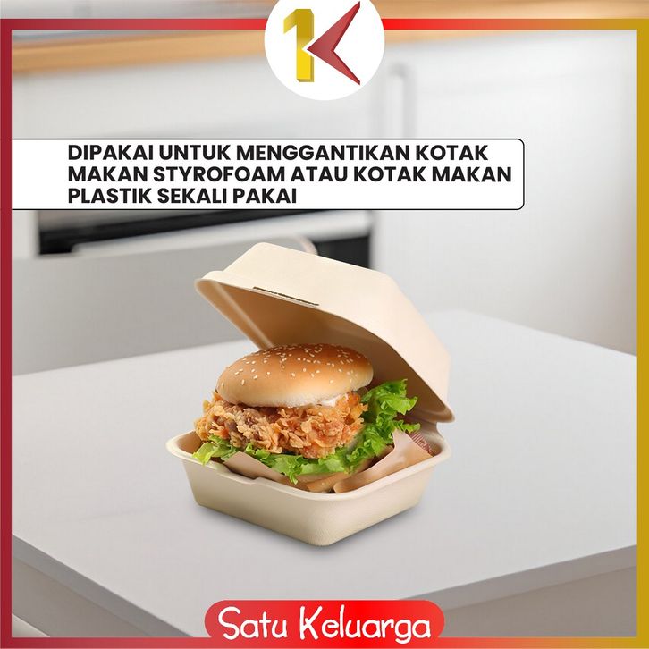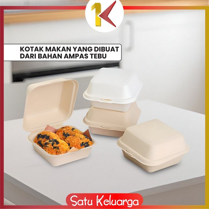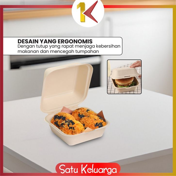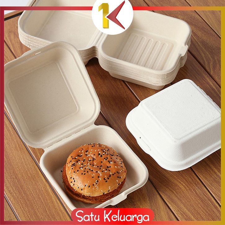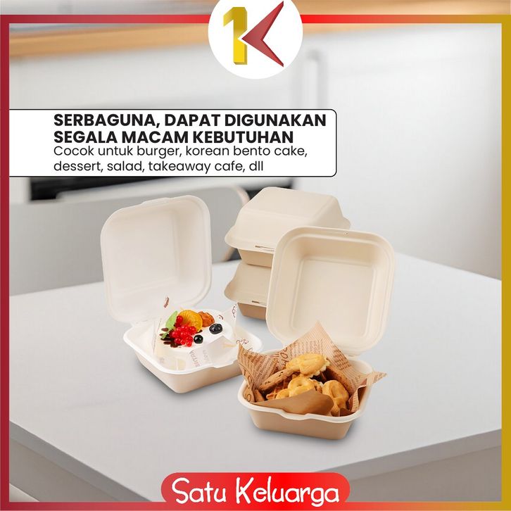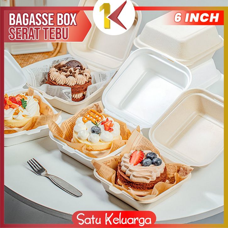 SK-C1100 Bagasse Box Serat Tebu Lunch Box Burger 6in Food Grade / Kotak Bento Cake Korea / Mini Box Food Container