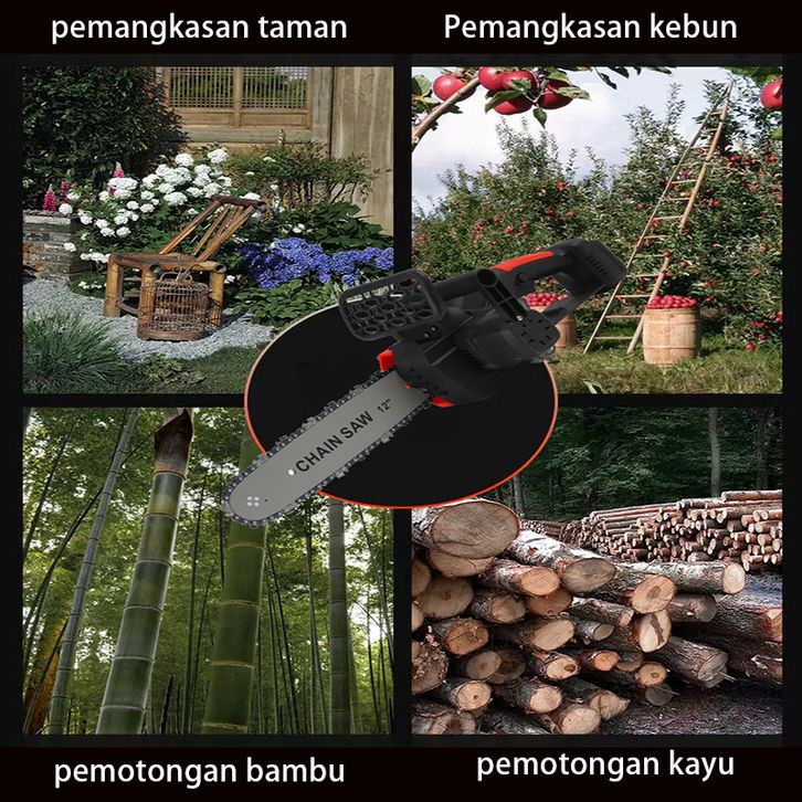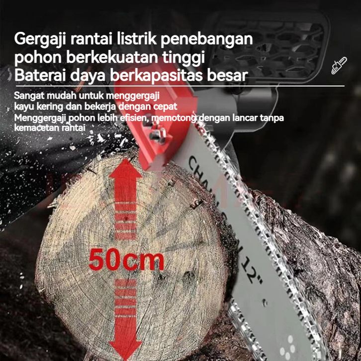 Gergaji Chainsaw Pemotong Kayu Gergaji Listrik 2 Baterai Handheld Chai