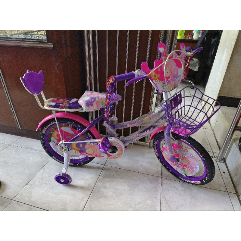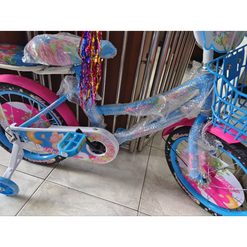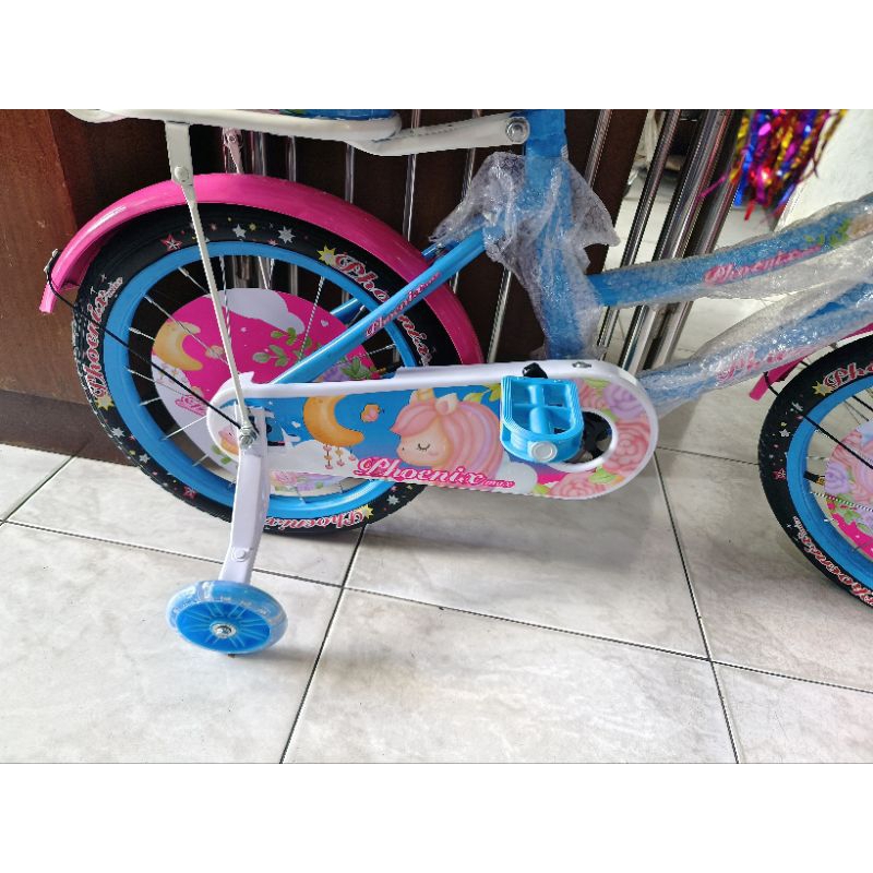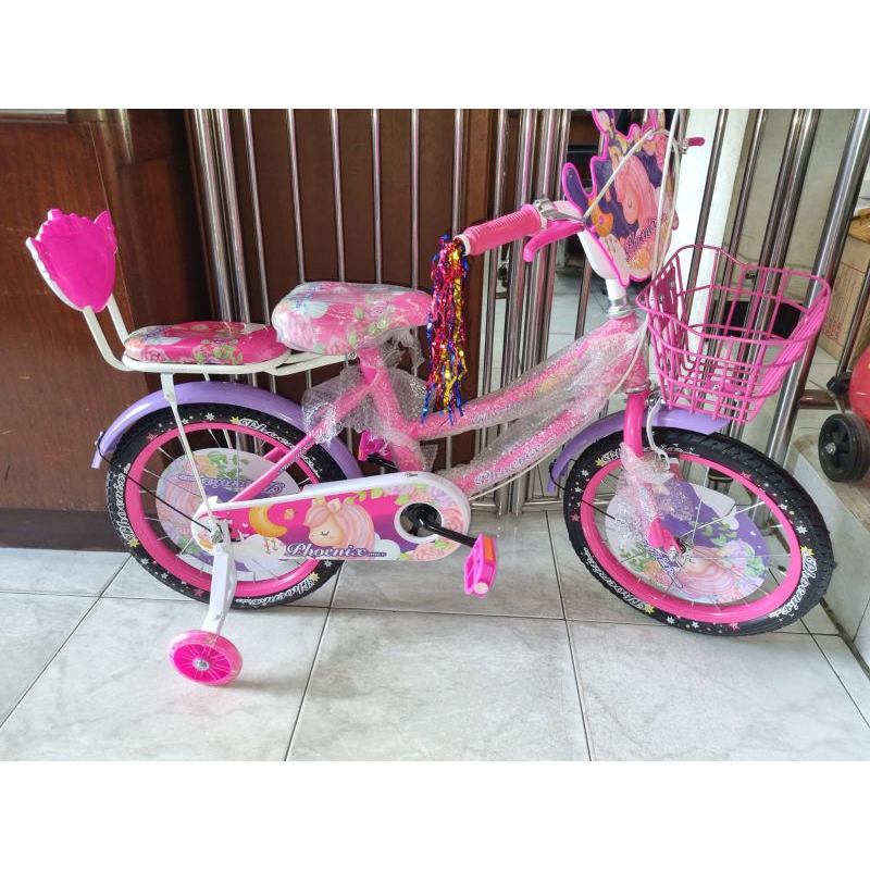 SEPEDA MINI ANAK CEWEK UK 16 MERK PHOENIX+ KERANJANG BESI + RODA SAMPING KARET KLAHERAN + BAN MOTIF
