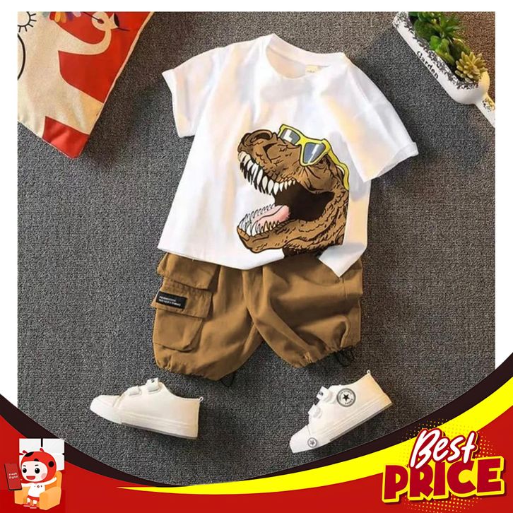 CICILAN SETELAN BAJU ANAK LAKI LAKI MOTIF DINO USIA 1-5 TAHUN TERBARU // SET DINO TIREX