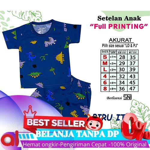 CICILAN PROMO 6.6 KELFI SETELAN ANAK FULL PRINTING / SET BAJU ANAK COWOK / CEWEK USIA 1- 8 TAHUN "DINORO EDITIO"