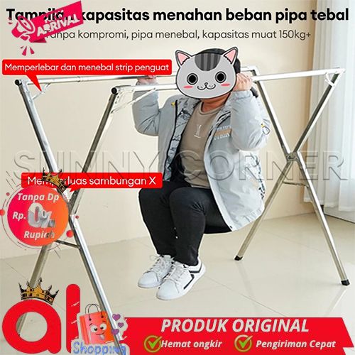 CICILAN JEMURAN BAJU LIPAT DENGAN RODA JEMURAN BAJU STAINLESS STEEL PORTABLE JEMURAN PAKAIAN ANTI KARAT KUAT TEMPAT