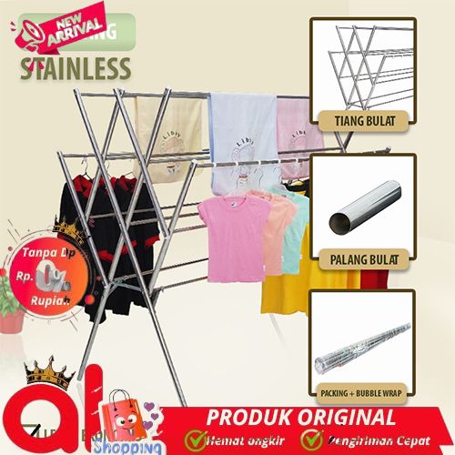 CICILAN JEMURAN BAJU HANDUK STAINLESS BESAR 12 PALANG+GANTUNGAN PANJANG :178CM X TINGGI :177CM