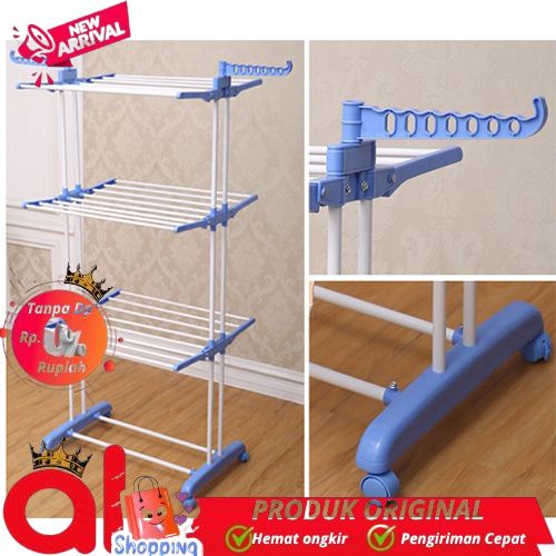 CICILAN JEMURAN BAJU 3 SUSUN / JEMURAN KOREA RAK SUSUN 3 TINGKAT / JEMURAN 3 SUSUN LAUNDRY BAJU STAND HANGER SERBAGUNA