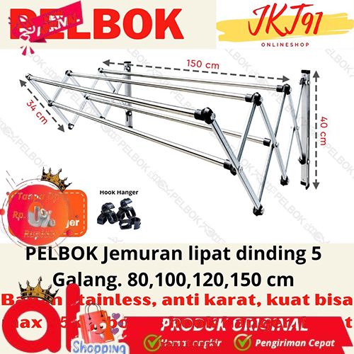 CICILAN PLBOK DOUBLE JEMURAN BAJU PAKAIAN DINDING LIPAT STAINLESS STEEL RAK JEMURAN BAJU 80 100 120 150