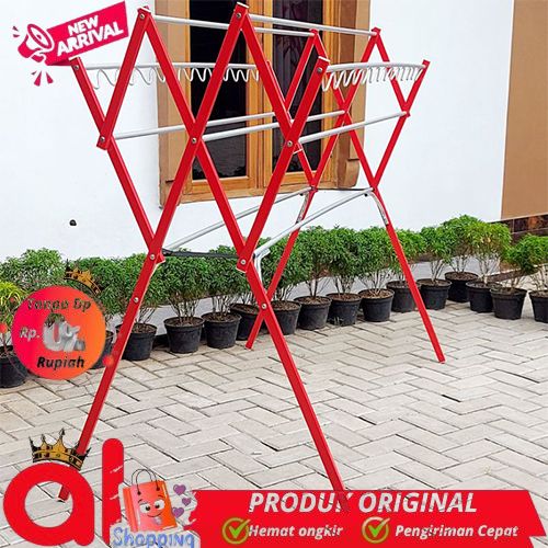 CICILAN TERMURAH - JEMURAN LIPAT / JEMURAN BAJU ALUMINIUM / JEMURAN PAKAIAN/MERAH
