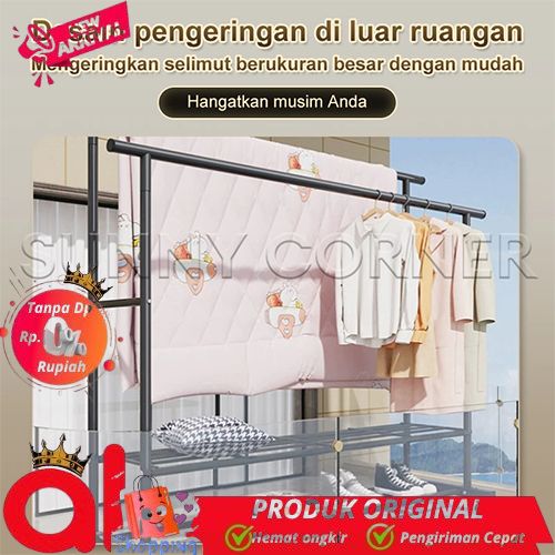 CICILAN RAK GANTUNGAN BAJU STAND HANGER 2 TINGKAT GAWANG BAJU JEMURAN PAKAIAN PORTABLE JEMURAN BAJU DENGAN 4 RODA
