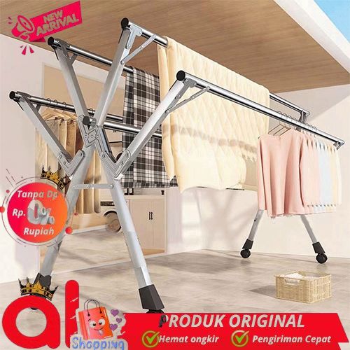 CICILAN JEMURAN BAJU PORTABLE STAINLES JEMURAN BAJU LIPAT 5 TIANG JEMURAN PAKAIAN ANTI KARAT KUAT TEMPAT