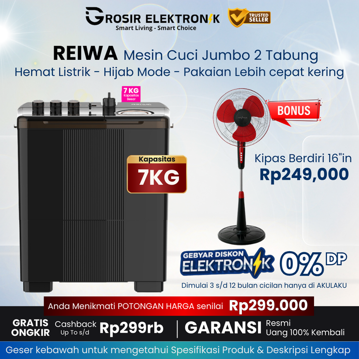 GRATIS ONGKIR - Mesin Cuci 8 KG - Vortex Drying DeepClean [ REIWA - RWS03 ] - mesin cuci 2 tabung 8kg - STGE - M2T