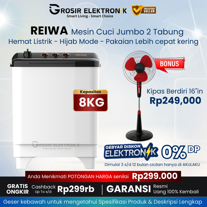 GRATIS ONGKIR - Mesin Cuci 8 KG - Hemat Listrik Hijab [ REIWA - RWS51 ] - mesin cuci 2 tabung 8kg - STGE - M2T