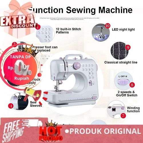 TANPA DP MESIN JAHIT MINI PORTABLE LED 705 12 STITCH POLA PAKAIAN JAHIT TANGAN