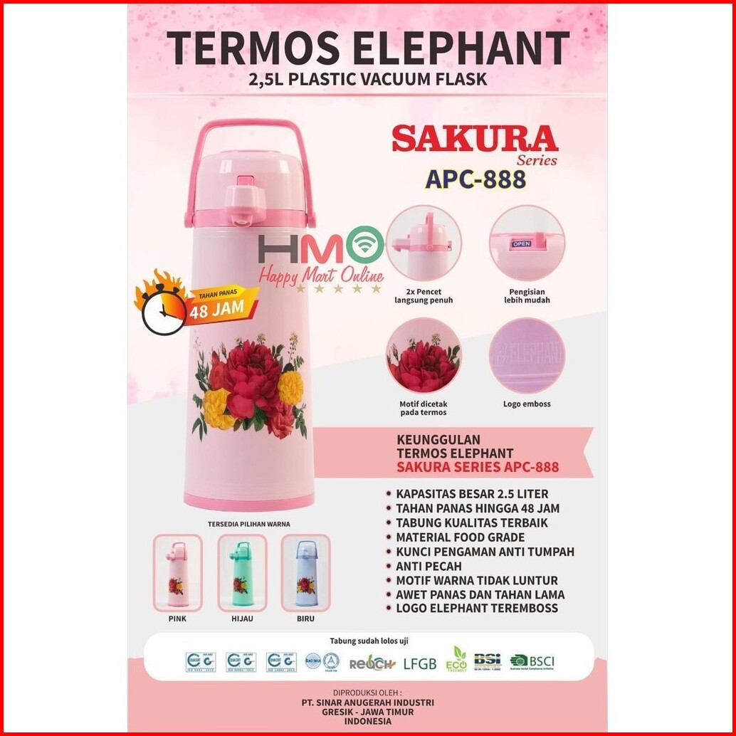 Termos Pompa Air Panas 2 5 Liter Tahan Panas 48 Jam Thermos Airpot Pencet Elephant Sakura Apc-888