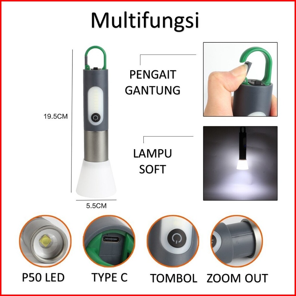 Senter Led Jarak Jauh Waterproof Ipx6 Zoomable Usb Type C Rechargeable