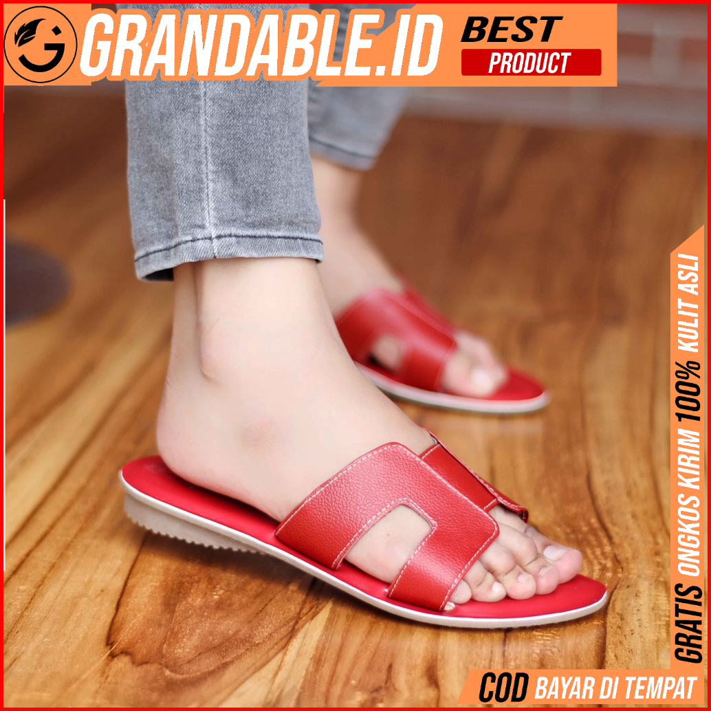 Grandale - Adelia Sandal Flat Wanita Kulit Asli Sendal Slop Teplek Original Kekinian Murah Terlaris