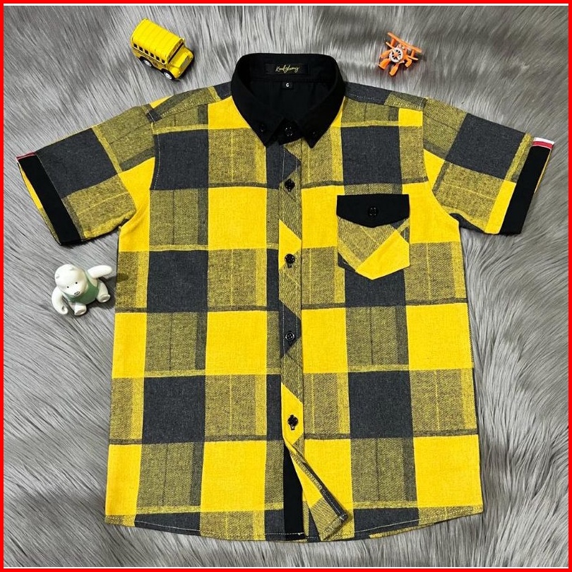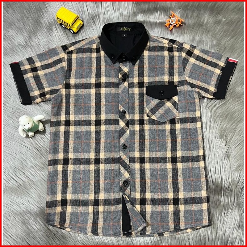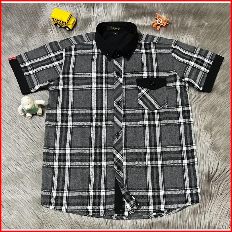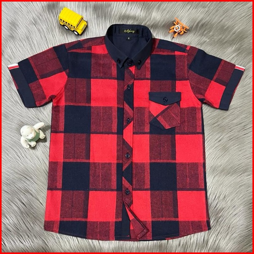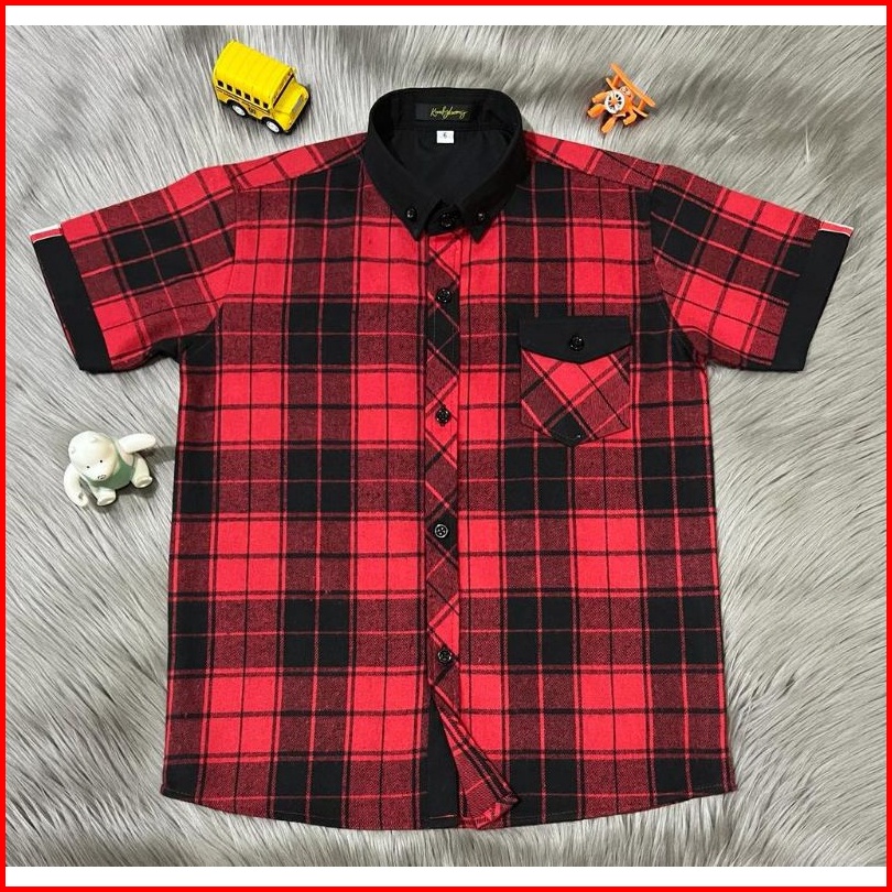 Kemeja Flanel Lengan Pendek Skoder Kemeja Kotak Anak Full Cattun 100 Usia 4 - 14 Tahun