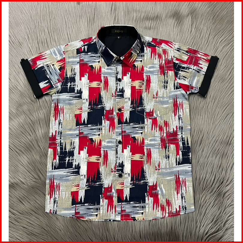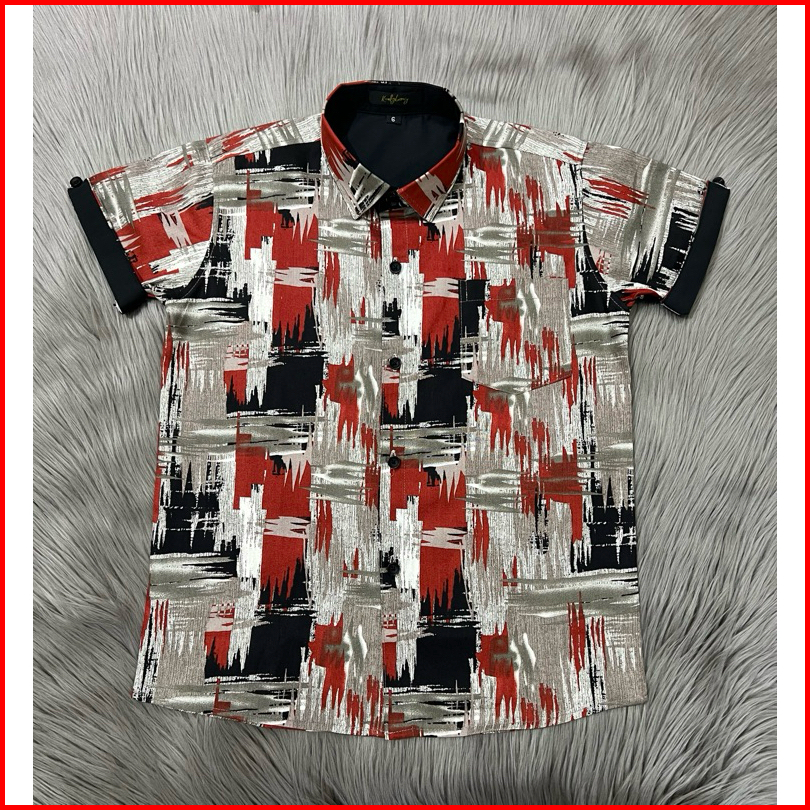 Kemeja Motif Anak Bahan Katun Kemeja Lengan Pendek Usia 3 - 14 Tahun