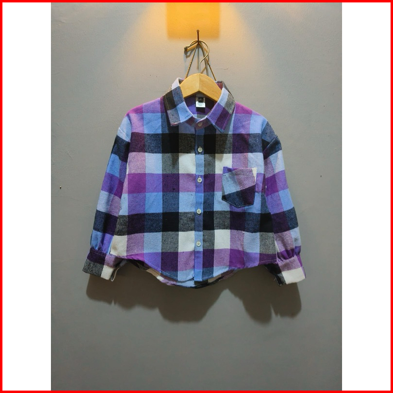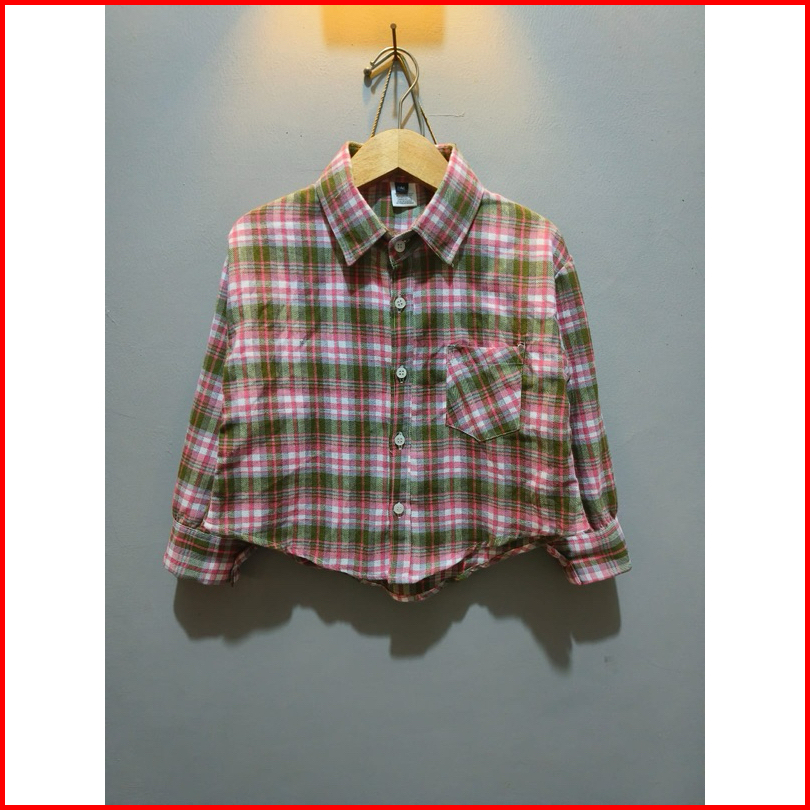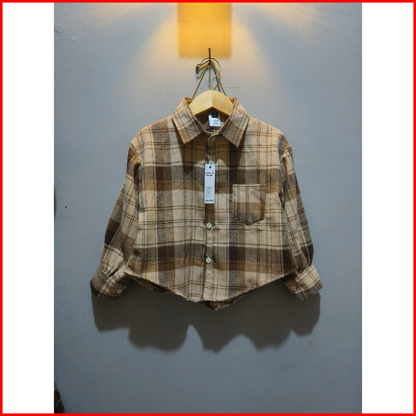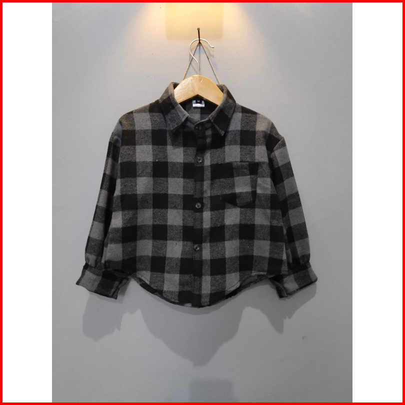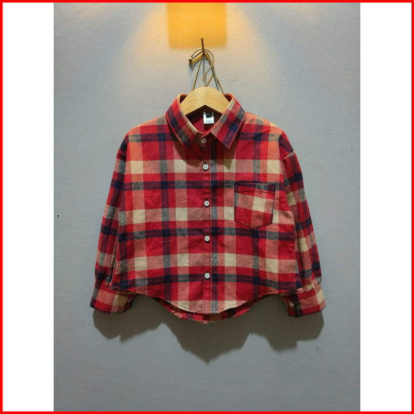 Kemeja Flannel Crop Anak Perempuan 8-11 Tahun